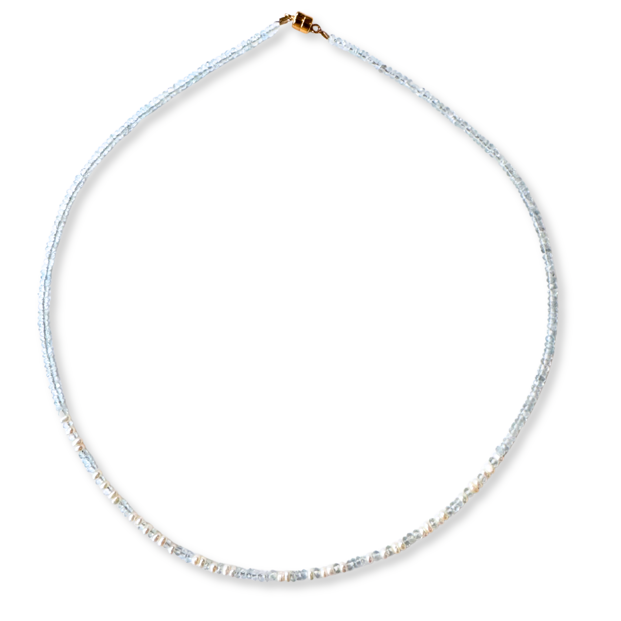 Morse Code FT Necklace Aquamarines and Pearls